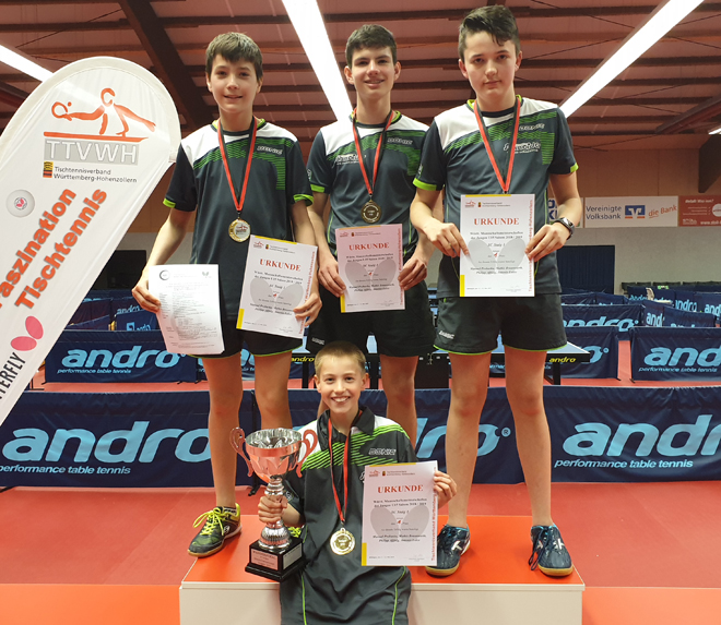 Nach einer Mammutveranstaltung über 2 Tage, bei der unsere Jungs insgesamt 7 komplette Punktspiele absolvieren mussten, haben die 16 besten Jungen-Mannschaften U15 in Württemberg, im Tischtennis-Zentrum in Böblingen, den diesjährigen Mannschaftsmeister ermittelt.